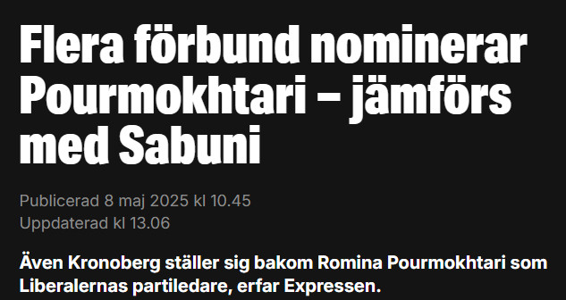 Oh boy, grabbar. Min omedelbara tanke var att det här borde, för de allra flesta, vara ett järtecken. Sabunis politiska karriär är för en utomstående inte något man skulle vilja ha i CVt – inte nödvändigtvis på grund av hennes insats, utan snarare känslan att hon kastats in som minoritetssäkrat människooffer för att genomföra Liberalernas kursändring från antiauktoritärt parti till samarbetsparti för Sverigedemokraterna. En kort och kontroversiell tid i rampljuset, bara för att sedan ersättas med en menlös korvätarfarbror.