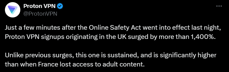 Pornhub tappade nästan halva sin brittiska trafik över en natt. Politikerna firade, samtidigt som ProtonVPN rapporterade rekord i nya användare. Porrförbudet blev i praktiken en VPN-kampanj.