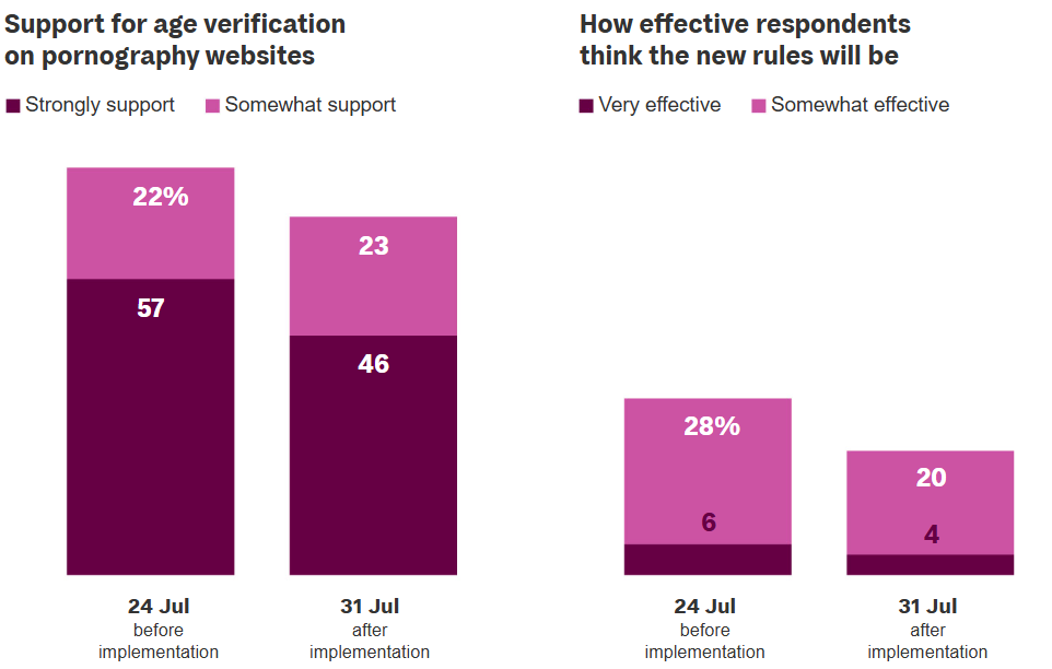 Samtidigt sker samma begränsning för tillgången till krigsrapportering på både Reddit och X. Wikipedia hotar att begränsa tillgången för brittiska användare för att inte kränka rättigheterna hos wikianer som bidrar med information, och har utmanat lagstiftningen i rätten.